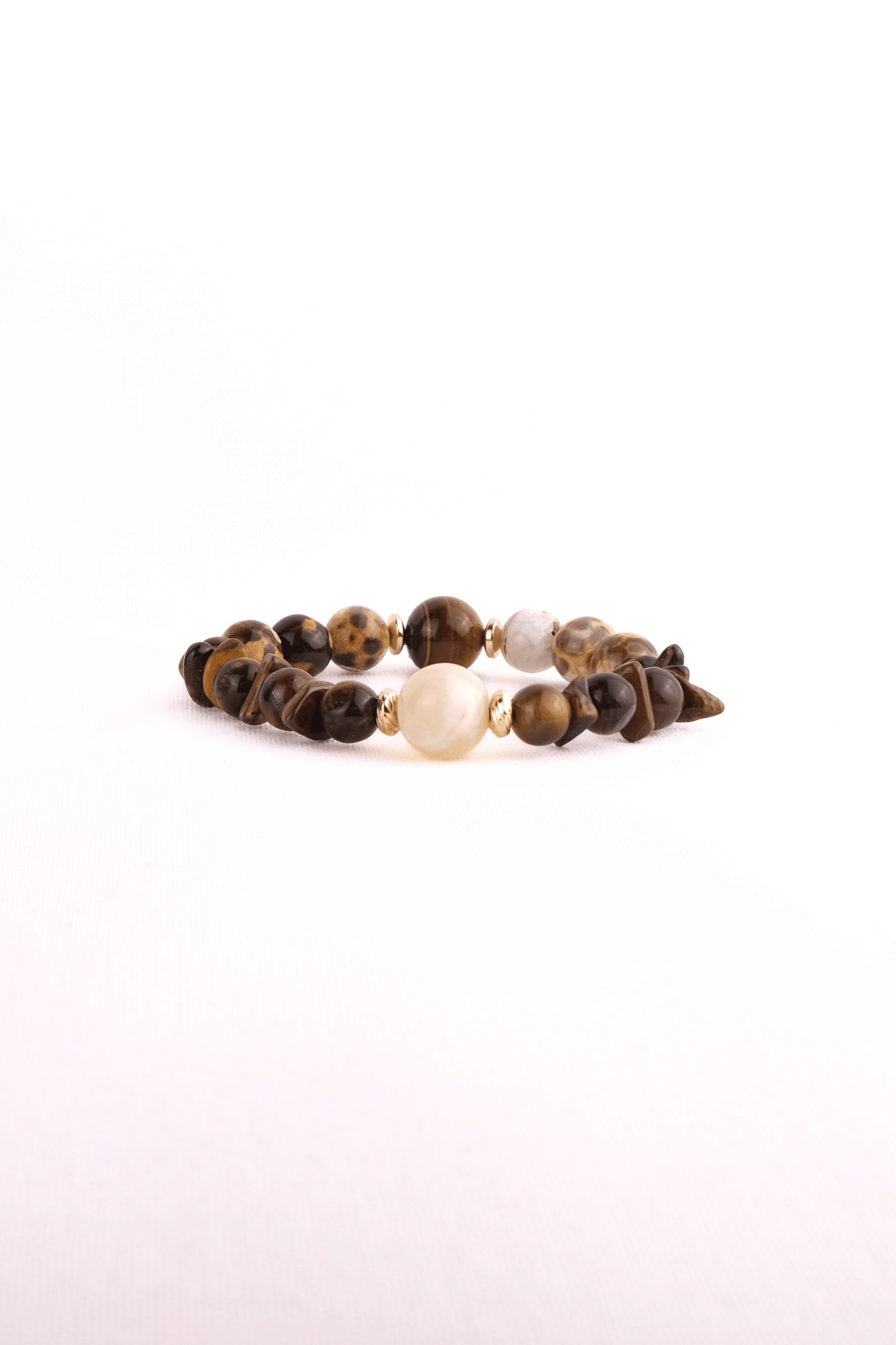 Savanne Armbånd Med Leopard Jaspis Kalcedon Tigerøje 18k Forgyldt Messing